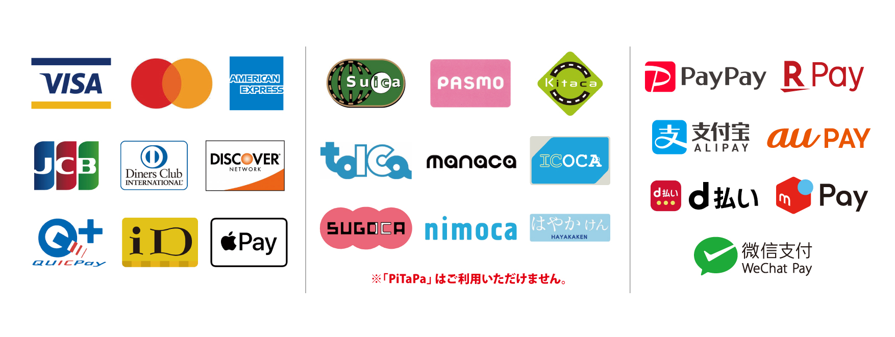 グッズ売場では、現金のほか、下記クレジットカード・電子マネー・PAYサービスがご利用いただけます。現金でお支払いの際はなるべくお釣りの出ないようご準備いただきますようご協力お願いいたします。