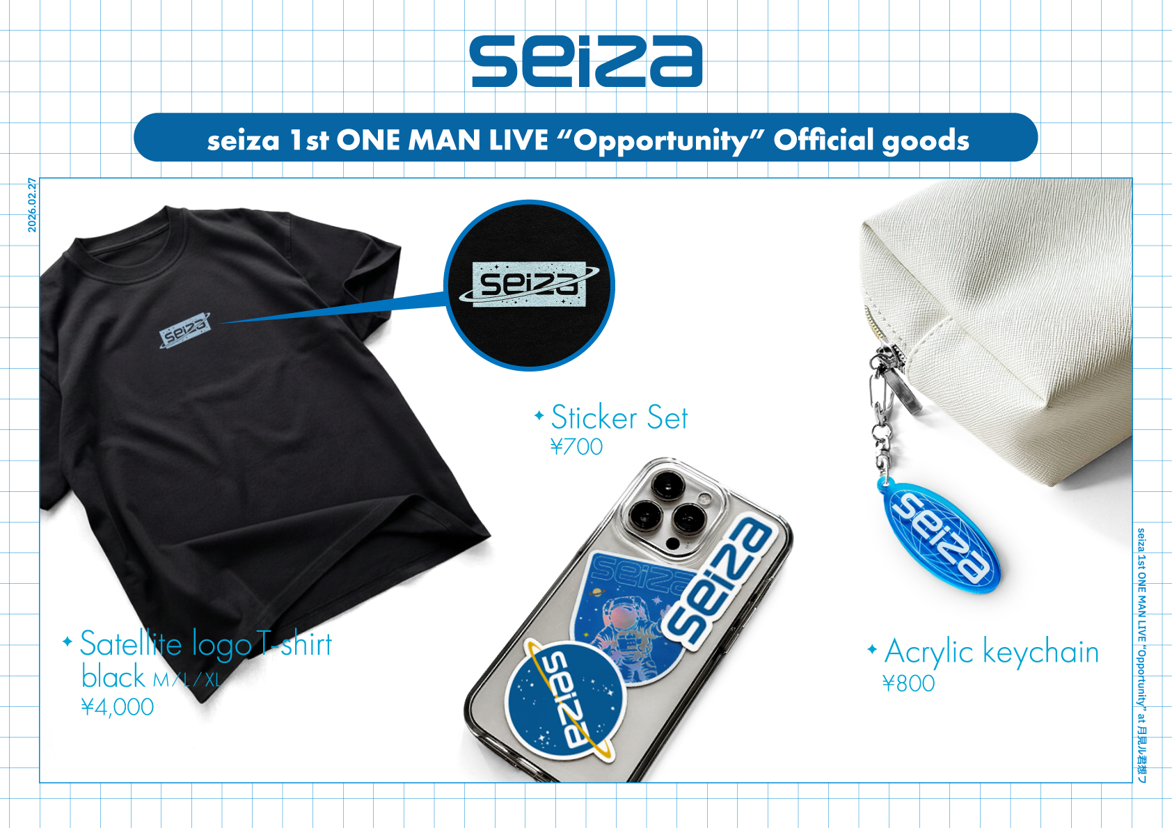 seiza 1st ONE MAN LIVE -Opportunity- の会場にて販売いたしましたオフィシャルグッズの一部商品につきまして、オンライン販売を実施いたします。